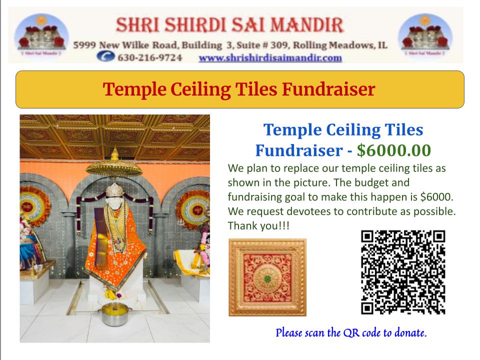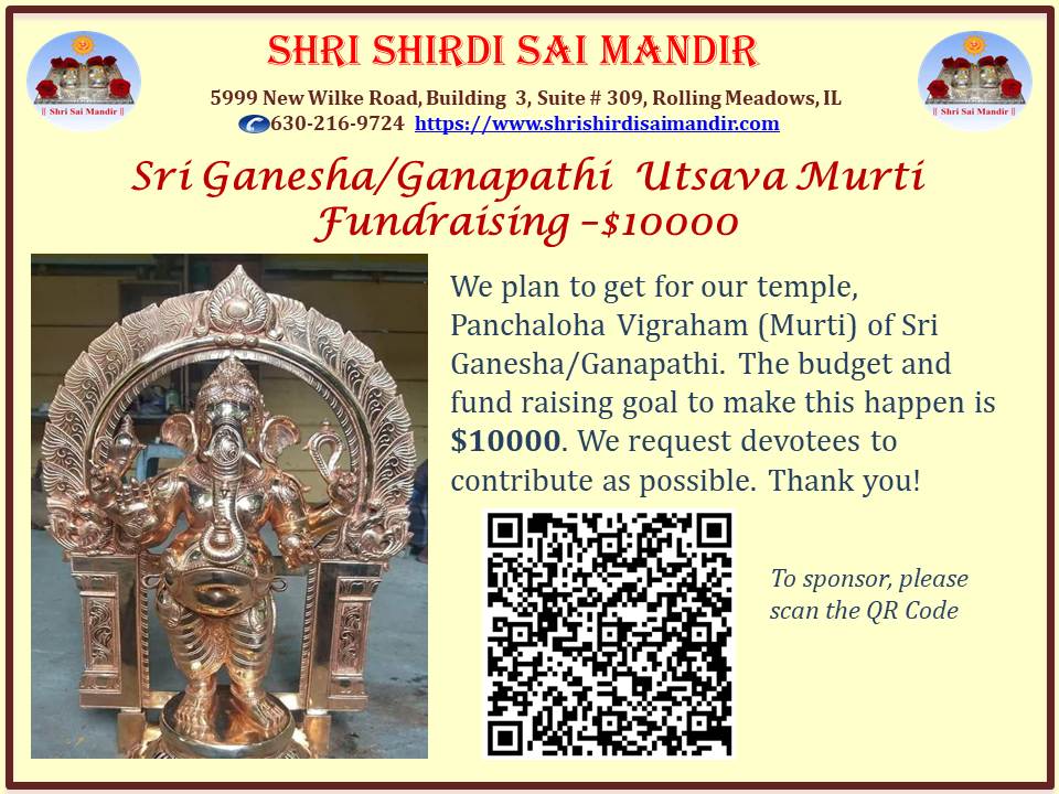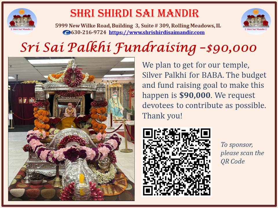 Fundraising to pay monthly mortgage for Shri Shirdi Sai Mandir in Rolling Meadows, IL.